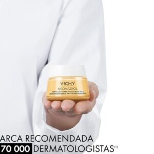 O Neovadiol Creme Uniformizador de Tom FPS50 reduz os impactos da pele na menopausa aumentando a elasticidade, firmeza, nutrição e redução de rugas. Com uma textura creme leve, possui rápida absorção e leve fragrância.