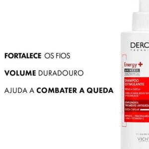 O Shampoo Estimulante Vichy Dercos Energy+ inaugura uma nova era no cuidado com cabelos enfraquecidos que estão caindo mais do que o normal. Sua fórmula poderosa, parte de uma linha desenvolvida para fortalecer e revitalizar os fios, reduz a queda capilar e complementa o tratamento antiqueda da linha.