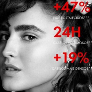 +47% fios fortalecidos, cabelos volumosos por 24H e +19% mais densos, couro cabeludo e raízes profundamente limpos.