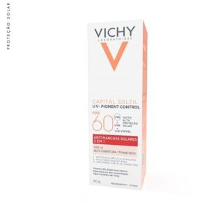 Capital Soleil UV-Pigment Control FPS60 é o protetor solar com cor que possui alta eficácia uniformizadora do tom de pele comprovada dermatologicamente. Protege a pele contra os raios UVA, UVA longo e UVB, prevenindo contra hiperpigmentação causada pela exposição ao sol.